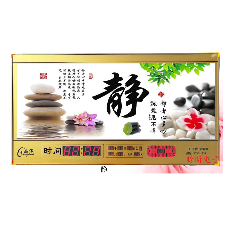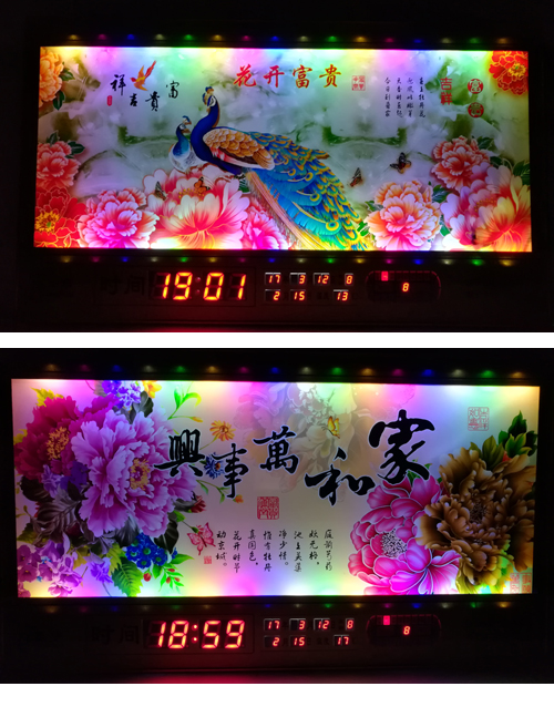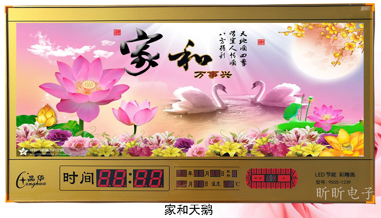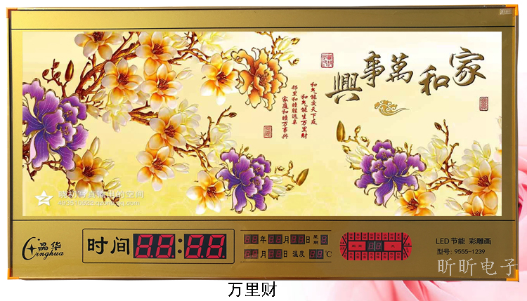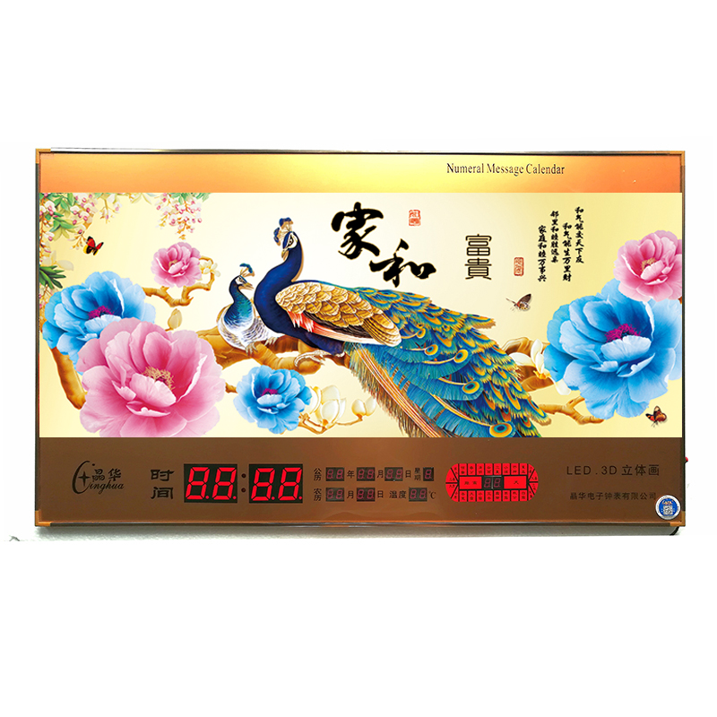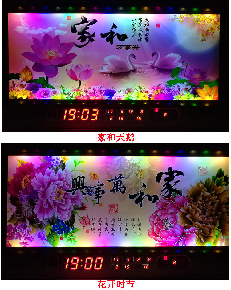 新房客廳裝飾日歷掛鐘,家和風(fēng)景萬年歷,超薄七彩燈光更漂亮