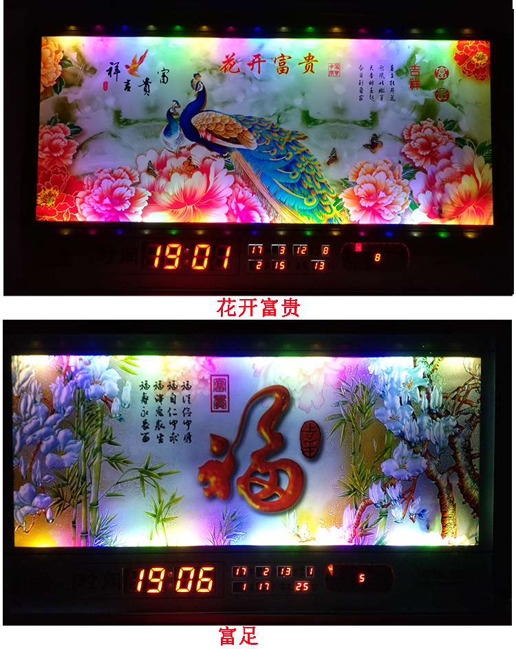 新房客廳裝飾日歷掛鐘,家和風(fēng)景萬(wàn)年歷,超薄七彩燈光更漂亮