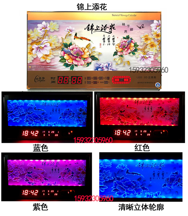 超薄鋁合金邊框,七彩燈顯示更漂亮,客廳裝飾日歷掛鐘