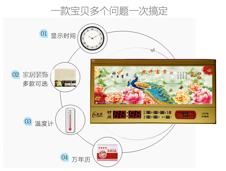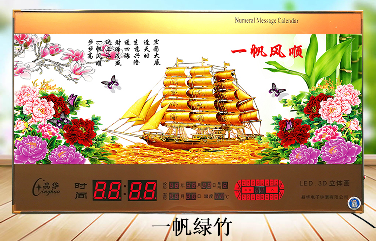 新房客廳裝飾日歷掛鐘,家和風(fēng)景萬年歷,超薄七彩燈光更漂亮